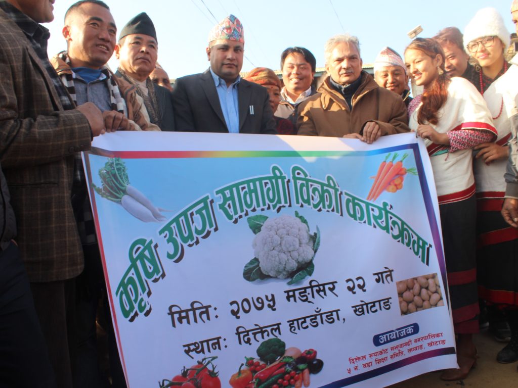 बुधवार र शनिवार नियमित हटिया लाग्ने दिक्तेलवजारस्थित हाटडाँडामा शनिवार आयोजित विक्रि कार्यक्रममा स्थानीय अभिभावकको हातवाट भट्टराईलाई उक्त कृषि उपज प्रदान गरिएको हो । उहाँलाई विद्यार्थी तथा स्थानीयहरुले आफुले उत्पादन गरेको तथा विक्रिको लागि ल्याएको विभिन्न उपजहरु उपहार दिँदै स्वागत गरेका थिए ।