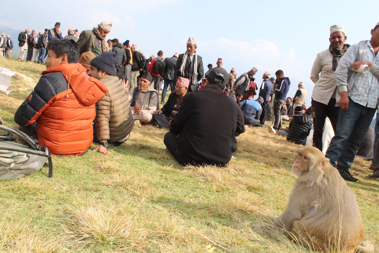 वाँदर नियन्त्रण गर्ने सम्वन्धमा दिक्तेलवजारमा भएको वृहत भेलामा आएका वाँदर ।