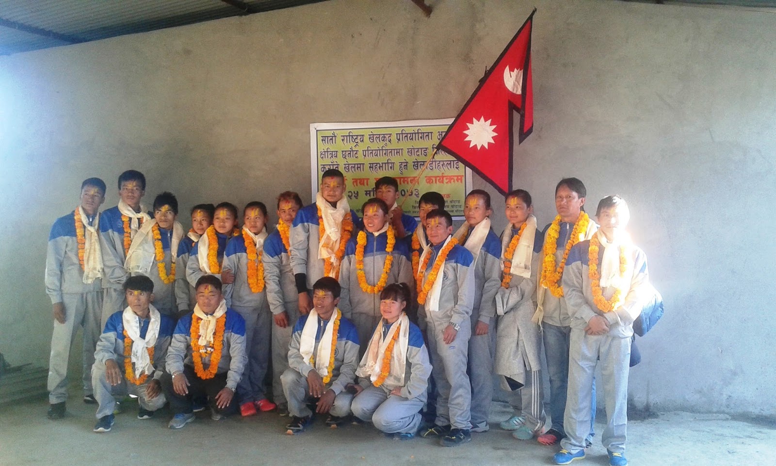 मंसिर २७ गतेदेखि २९ गतेसम्म बिराटनगरको शहिद रंगशालामा हुने सातौँ राष्ट्रिय खेलकुद प्रतियोगीता अन्तरगतको क्षेत्रीय छनौट प्रतियोगीताकालागि जाने खेलाडीलाई शनिबार दिउँसो जिल्लाबासीले भव्य कार्यक्रमकाबीच बिदाई गरेका हुन् । सितोरियो करातेका संस्थापक प्रशिक्षक थानेश्वर राईको गृहजिल्लाका शुभेच्छुकले क्षेत्रीय प्रतियोगीता हुँदै राष्ट्रिय प्रतियोगीतामा पुग्न र बिजयी बनेर ‘खोटाङको नाम र ईज्जत’ फैलाउनकालागि शुमकामना दिँदै सितोरियो खेलाडीलाई बिदाई गरेका हुन् । सदरमुकाम दिक्तेलको पूरानोबेस क्याम्पमा आयोजित कार्यक्रममा जिल्लाबासीकोतर्फबाट राजनैतिक दल, प्रशासन, सुरक्षा निकाय, कार्यालयका प्रमुख तथा प्रतिनिधि लगायतले सितोरियो खेलाडीलाई अबिर र माला ओढाएर बिदाईकासाथमा शुभकामना प्रदान गरेका छन् ।