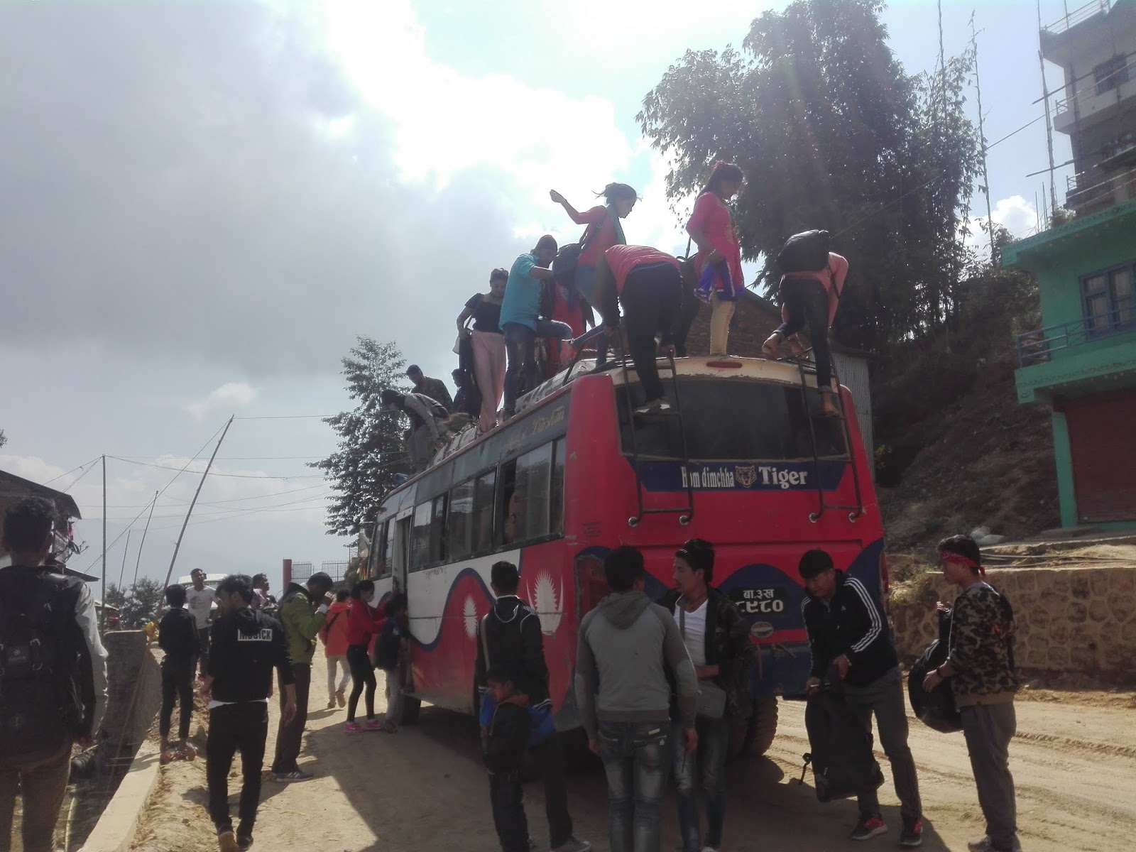 पर्वका बसको छतमा पनि कोचाकोच यात्रु
