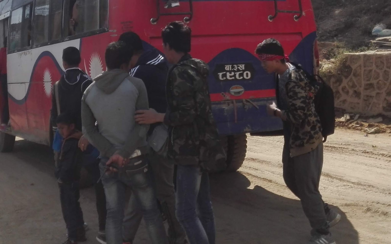 युवा र वयस्कहरु कोही छतमा त कोही बसभित्रै कोचाकोचा गर्दै पसे पनि ती वृद्धा पस्न सकिनन् । उनले आफूले सिट नभए जान नसक्ने पहिल्यै बताएको भन्दै टिकट काउन्टरवालासँग पैसा फिर्ता मागिन् । तर, उनले उल्टै हप्कीदप्की खाना परो । ब्वालुङका टिकट काउन्टरवालाले नजाने भएमा पैसा फिर्ता नहुने भन्दै हप्कीदप्की समेत गर्न पछि परेनन् । दबाब दिएर वृद्धालाई बसभित्र कोच्ने प्रयास गरिएपछि बसको ढोकाबाट लडेर झण्डै दुर्घटना समेत हुन पुगेको थियो । तर बसवालाले फेरि पनि ती वृद्धालाई ढोकामा झुण्ड्याएर यात्रा गराउने प्रयास गरे । त्यो सबै देखिरहेका एक स्थानीय वृद्धाले काउन्टरवाला र बसका स्टाफलाई गाली गर्दै सहचालकमाथि एक मुक्का बजारे । सहचालकले पनि हातपात गर्न खोज्दा स्थानीयले छुट्याए । हातपातकै अवस्था सिर्जना भएपछि चाकलले बस अगाडी बढाए । ती वृद्धा छुट्न पुगिन् । सम्पर्कको कठिनाईका कारण त्यसपछिको अवस्था बुझ्ने हाम्रो प्रयास भने अझै सफल भएको छैन ।