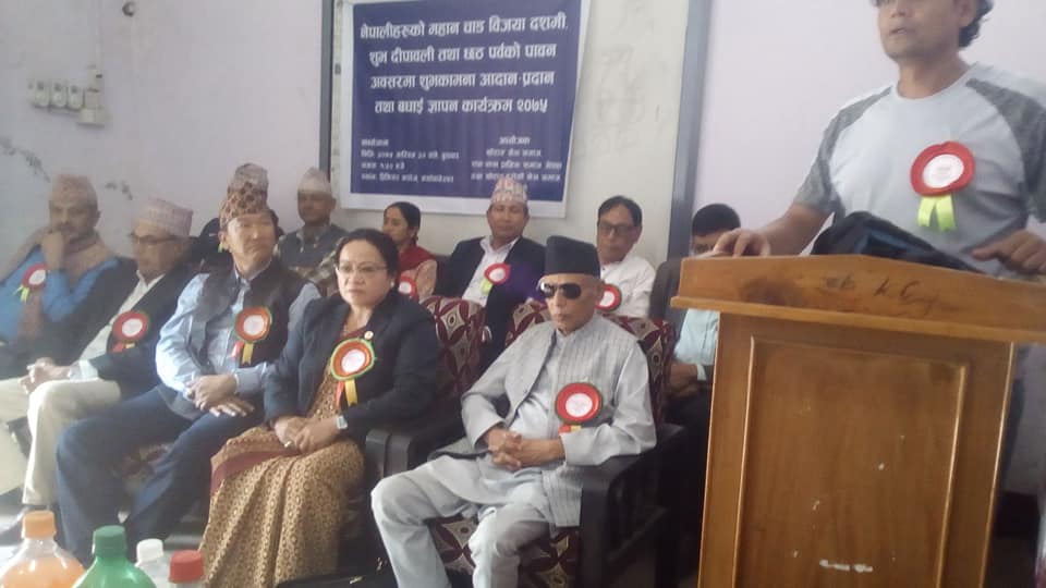 काठमाडौं २५ असोज ।नेपाली कांग्रेसका खोटाङ जिल्ला सभापति नरेश कुमार श्रेष्ठ र खोटाङ सेवा समाजका अध्यक्ष राकेश राईबीच नेपालीहरुको चाडपर्वको अवसरमा आयोजित शुभकामना आदान प्रदान कार्यक्रममा नै दोहोरी चलेको छ ।