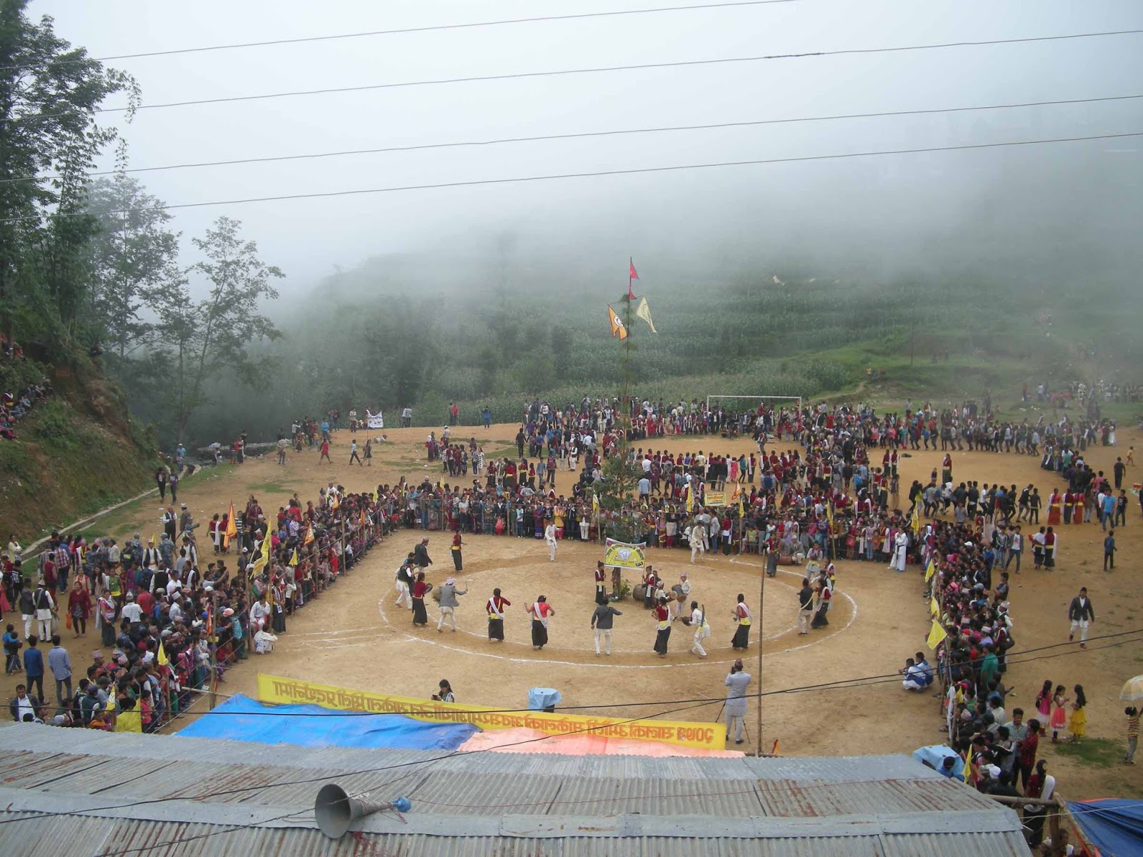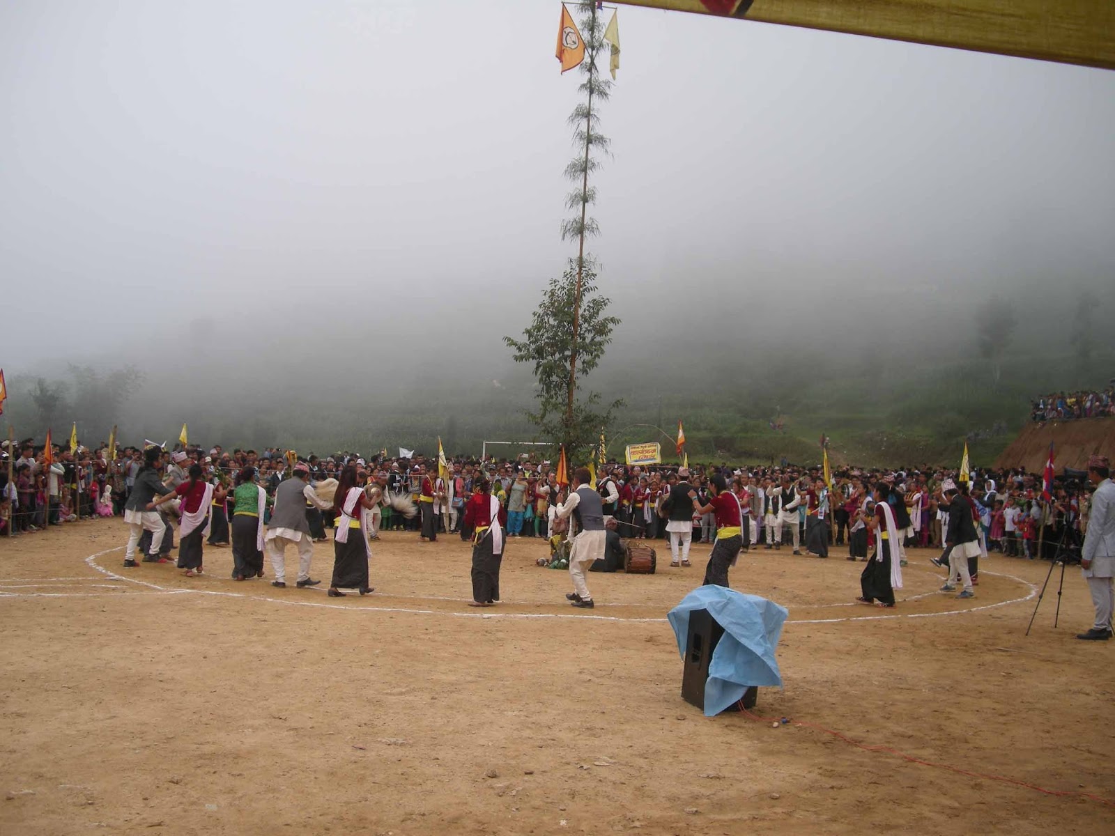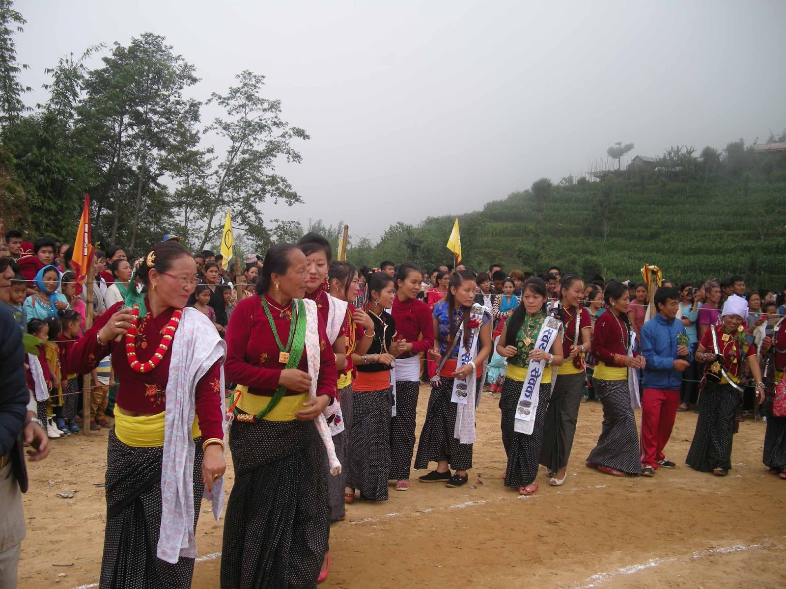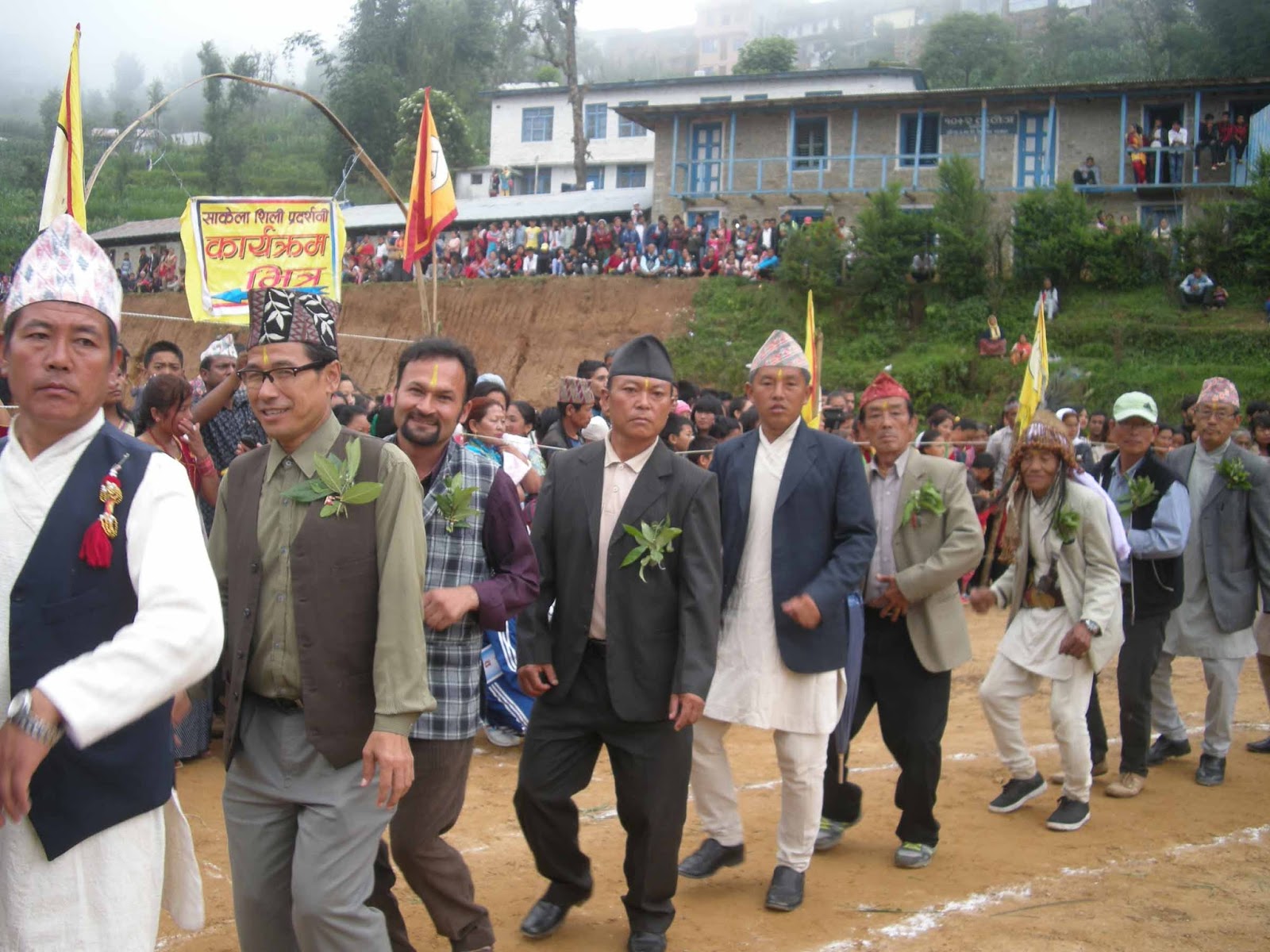 Home खोटाङ समाचार साकेलाको बिदाई नाच (फोटोफिचर) साकेलाको बिदाई नाच (फोटोफिचर) By हाम्राे खाेटाङ - २०७३ असार ५, आईतवार १३:३३ Share FacebookTwitterWhatsAppPrintViber खोटाङ सदरमुकाम दिक्तेलको माटिकोरेमा शनिबार आयोजना गरिएको साकेला शिली प्रदर्शनीमा साकेला नाच्दै किरात राई समुदाय । जिल्लामा हरेक वर्ष साकेलाको समापनका अन्तिम दिन माटिकोरेमा सामुहिकरुपमा साकेला नाच्ने प्रचलन छ । तस्बिर: हाम्रोखोटाङ डटकम
