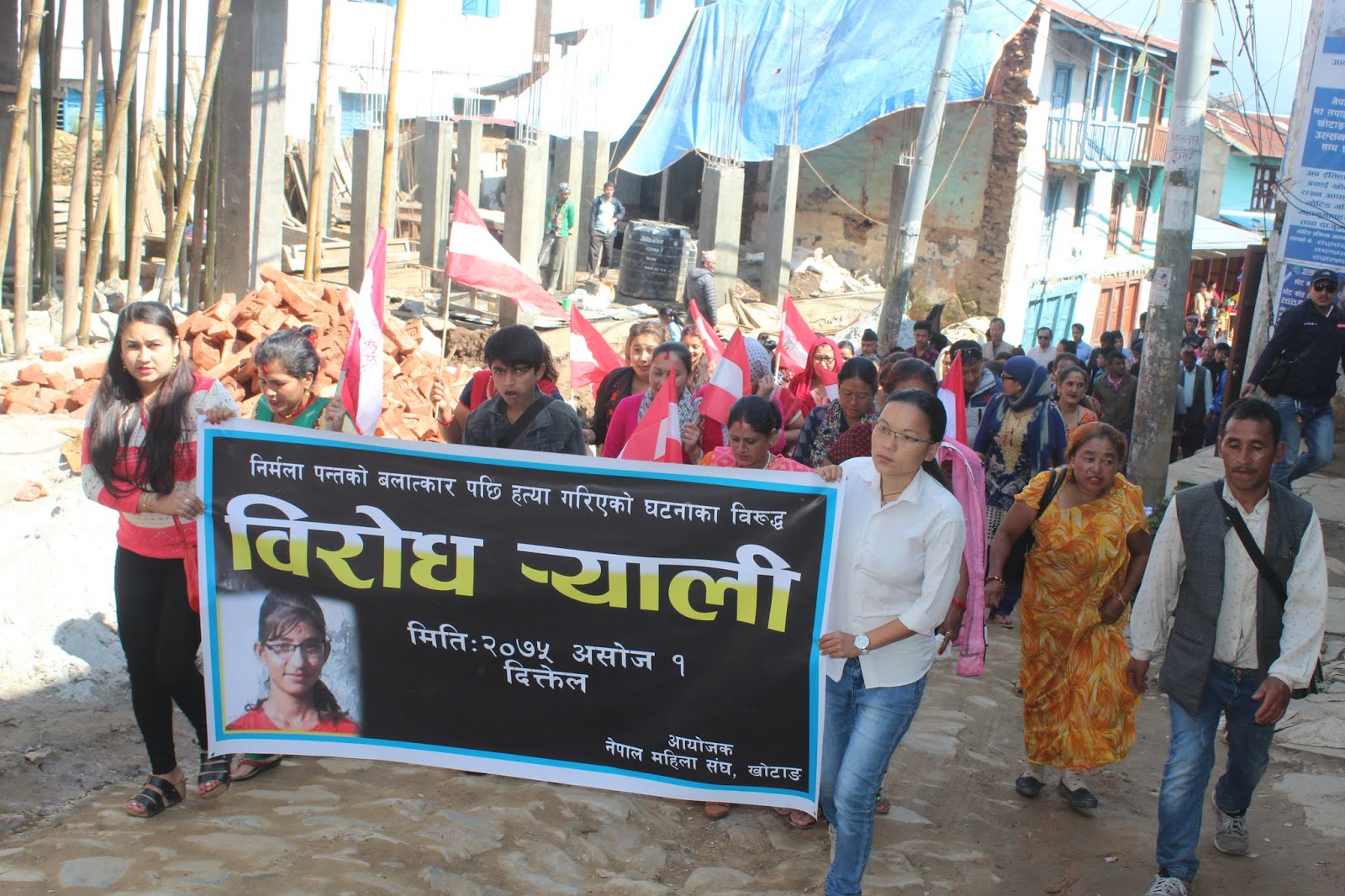 बलत्कारपछि हत्या गरिएको कञ्चनपुरकी १३ वर्षिया निर्मला पन्तको परिवारलाई न्याय दिलाउन माग गर्दै खोटाङमा प्रर्दशन गरिएको छ । निर्मलालाई बलात्कारपछि हत्या गर्नमा संलग्न दोषी पत्ता लगाउन नसकेको भन्दै सोमवार नेपाल महिला संघ खोटाङले दिक्तेलवजारमा प्रदर्शन गरेको हो ।