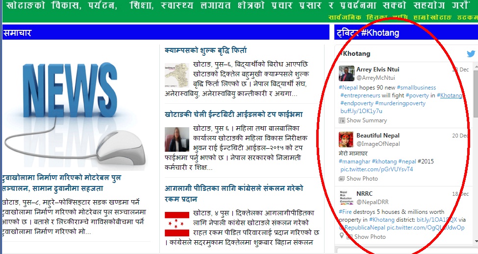 | ट्विटरमा #Khotang लेखेर गरिएका ट्विटहरु हाम्रोखोटाङ डटकम अनलाइनको होमपेजमा |