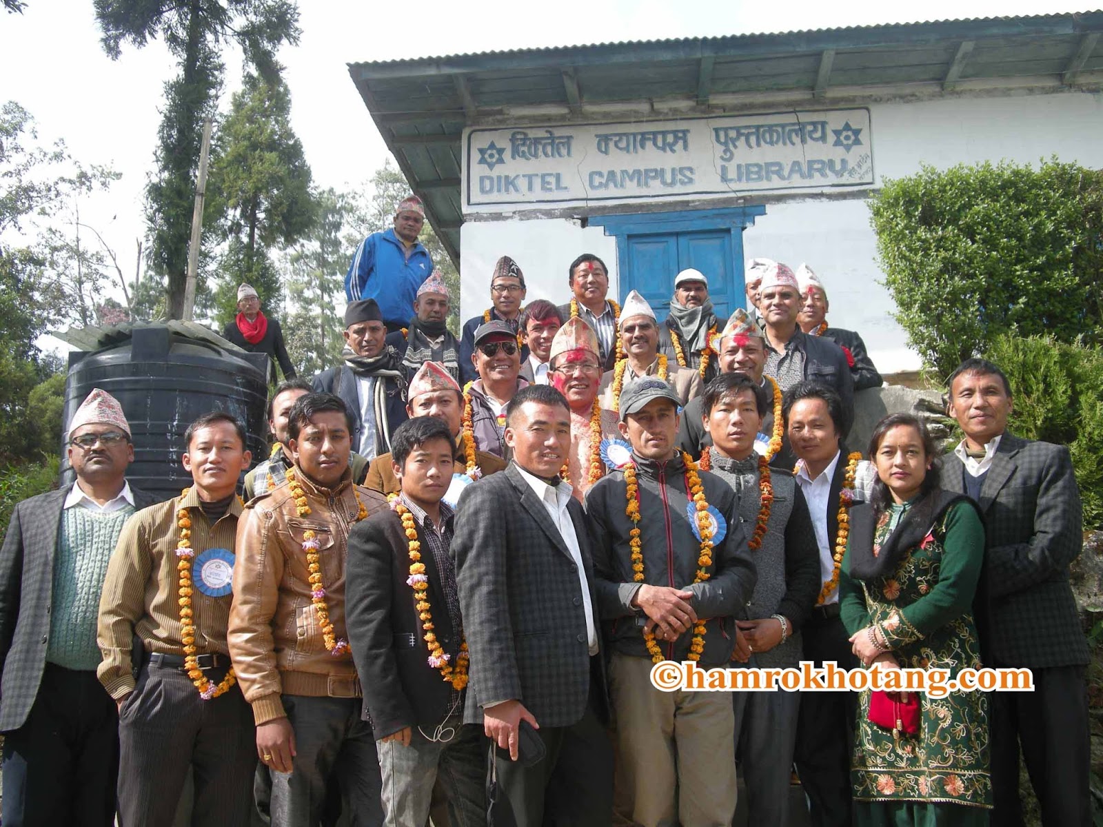 कार्यक्रमपछि सञ्चालक समितिसँग नेता, प्राध्यपक, बिद्यार्थी तथा पत्रकारहरु । तस्बिर: हाम्रो खोटाङ