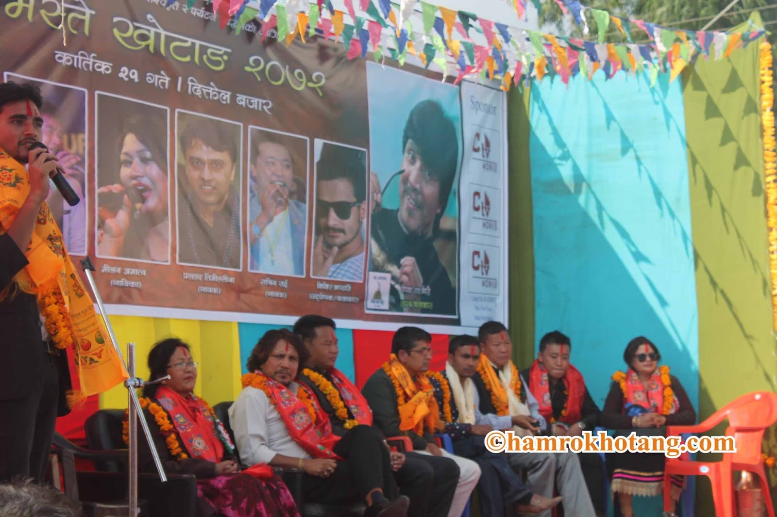 | ‘नमस्ते खोटाङ’को दोश्रो संस्करणमा उपस्थित कलाकार दिपकराज गिरी लगायतका अथिति र कलाकारहरु । तस्बिर: हाम्रो खोटाङ डटकम |