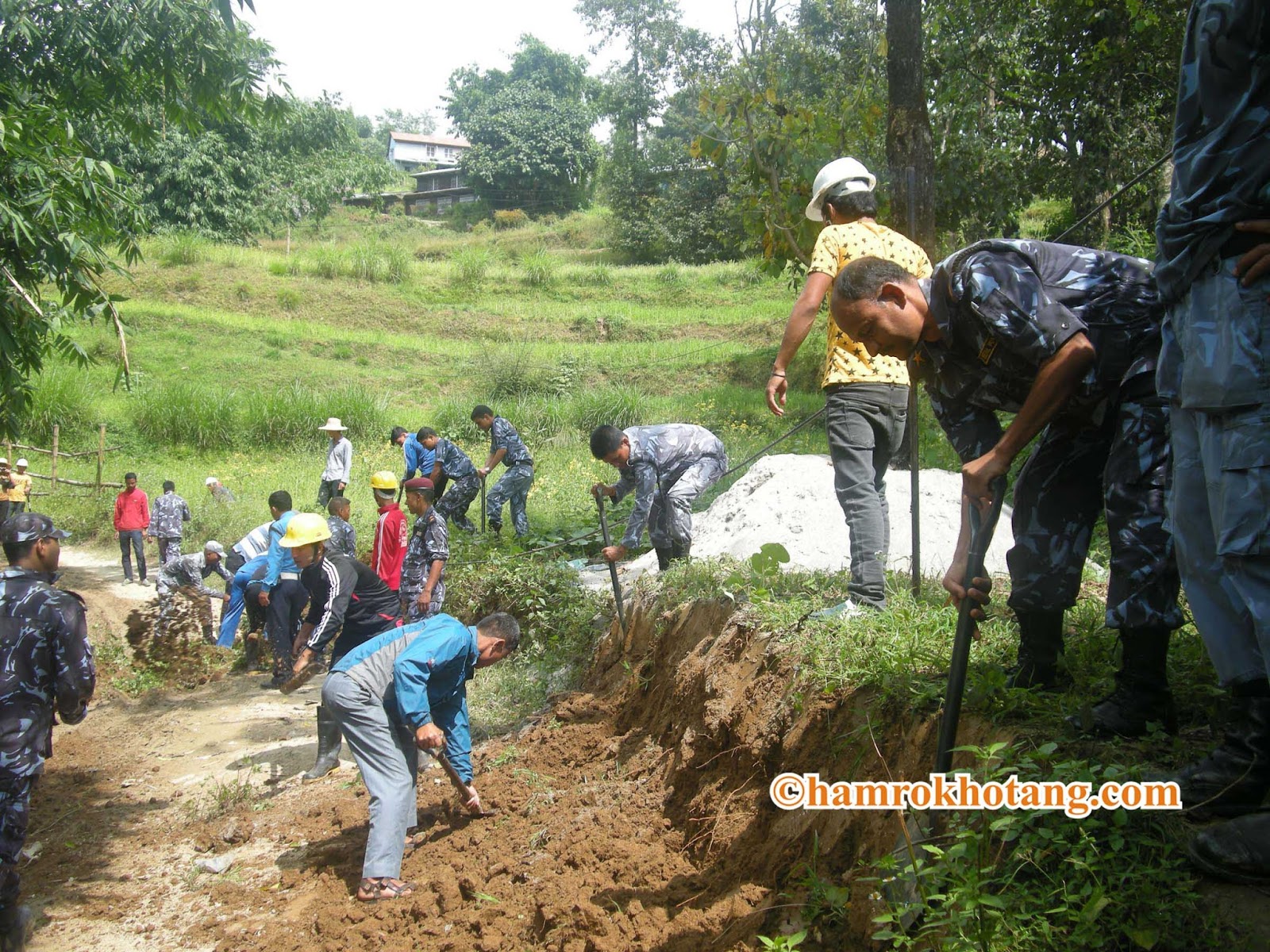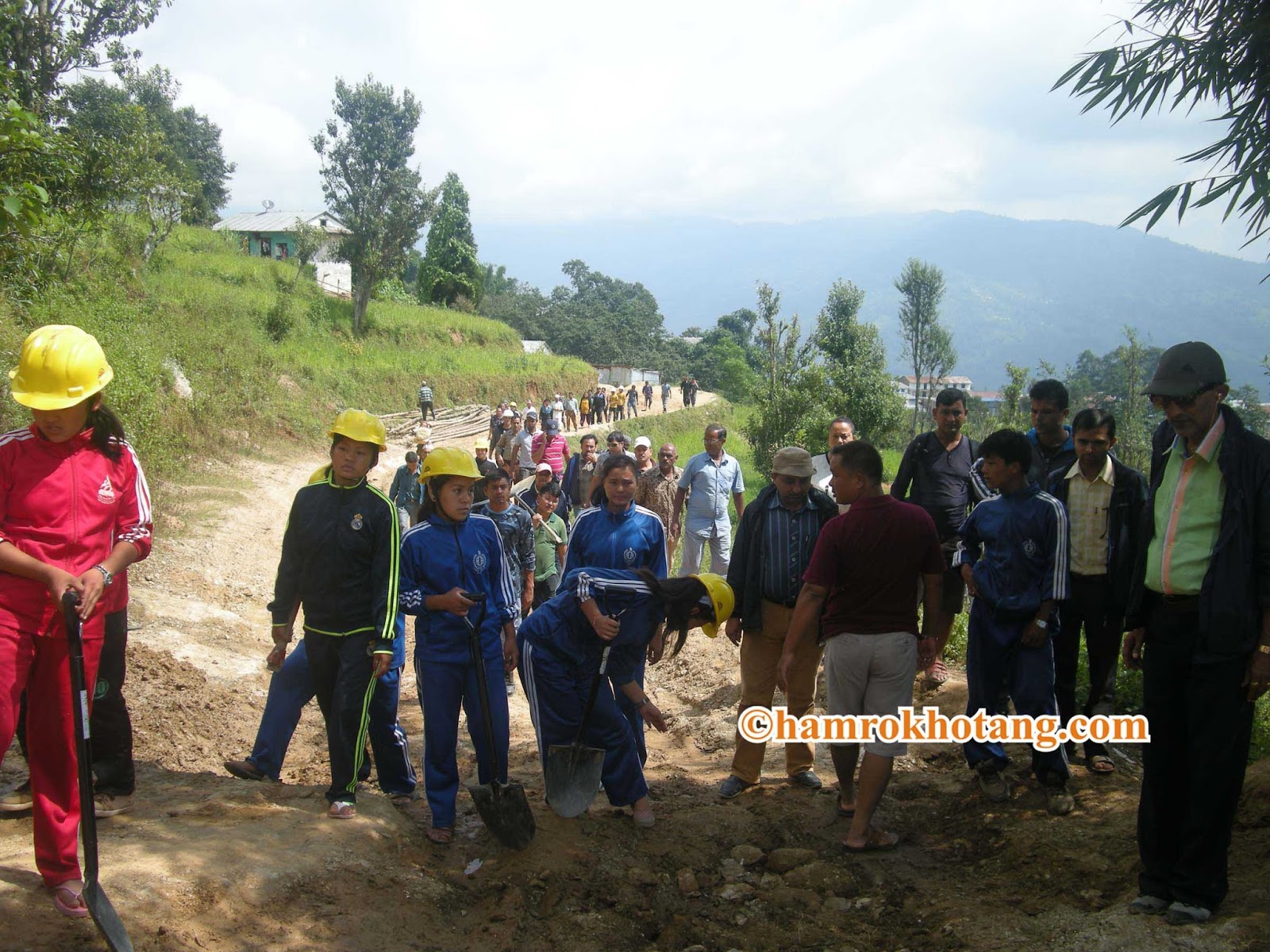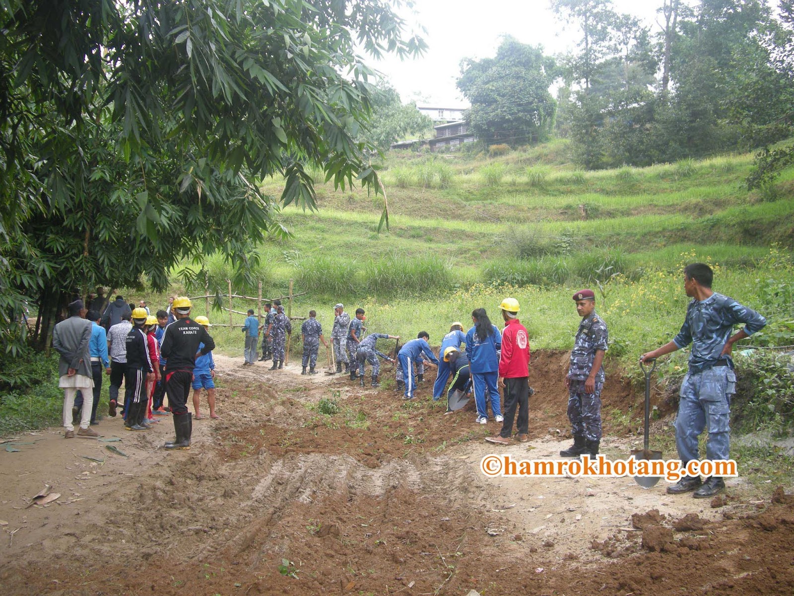 श्रमको सम्मानमा जिल्ला बिकास समिति खोटाङले शनिबार आयोजना गरेको सडक मर्मत कार्यक्रममा सहभागीहरु । ‘मेरो पहिचान–श्रमको सम्मान’ भन्ने नारासहित जिल्ला बिकास समितिले सुरु गरेको श्रमदान अभियान दल, कर्मचारी, संघसंस्थाका प्रतिनिधिको शारीरिक अभ्यास र फुर्सदको समयलाई सदुपयोग गर्ने माध्यम बनेको छ । साउन–२ गतेबाट हरेक साता सञ्चालन हुँदै आएको श्रमदान अभियान अन्तरगत शनिबार दिक्तेलको रत्नपार्क–मुढे सडक मर्मत गरिएको छ ।