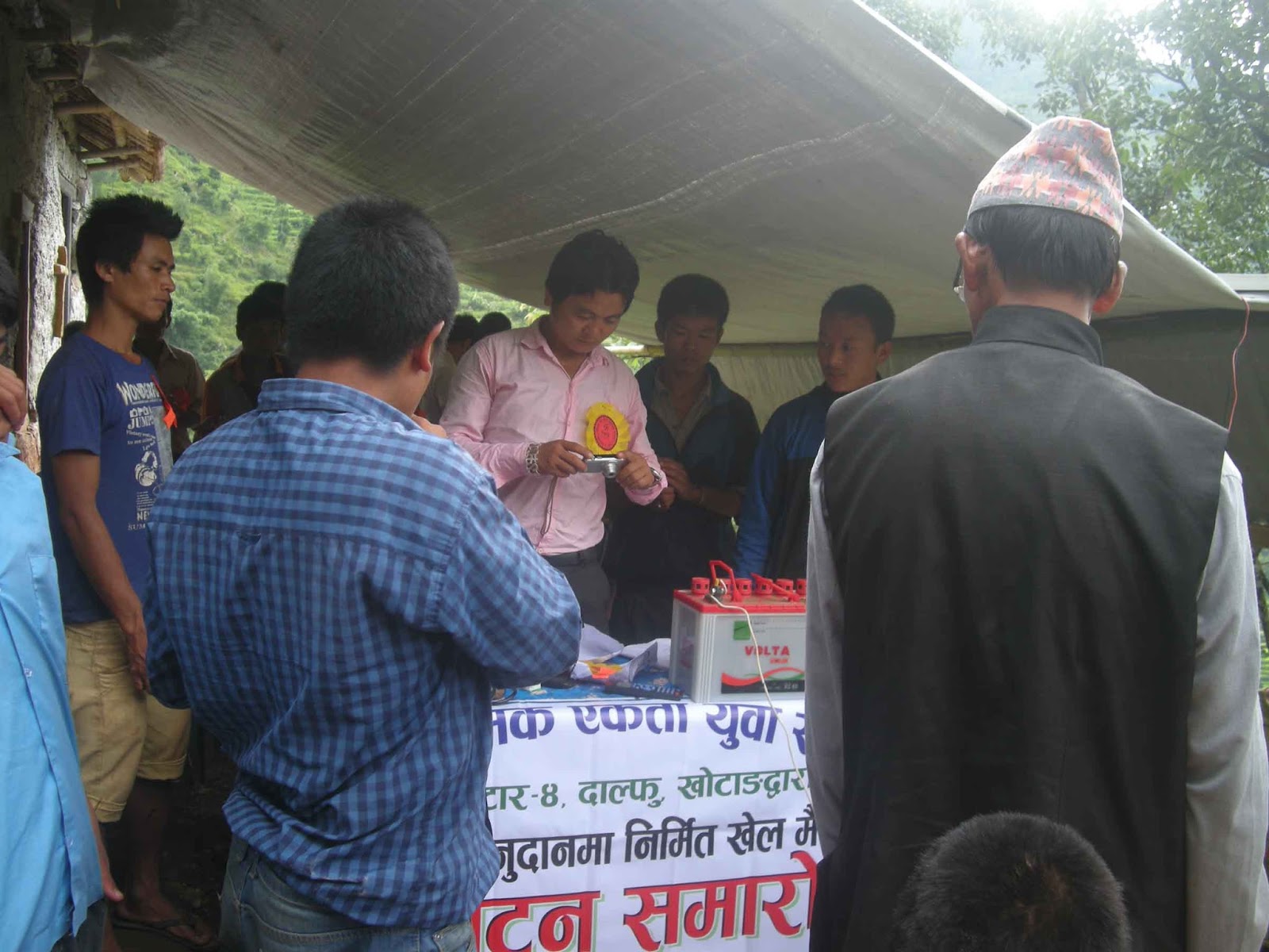 खोटाङ, असोज ११, खोटाङको पश्चिमी गाविस च्यास्मिटार–४ दाल्फुमा खेलमैदान उद्घाटन गरिएको छ । गाविसको २ लाख ३५ हजार अनुदान र २ लाख १७ हजार ५ सयको श्रमदानमा निर्माण गरिएको खेलमैदान बुधबार उद्घाटन गरिएको हो । चट्टान काटेर निर्माण गरिएको २३ मिटर लम्वाई र ९ मिटर चौँडाइ रहेको खेलमैदान खम्वुवान राष्ट्रिय मोर्चाका खोटाङ अध्यक्ष तुलसी तिलुङ खम्वु र काँग्रेसका जिल्ला उप–सभापति देवेन्द्रकुमार राईले उदघाटन गरेका हुन् ।