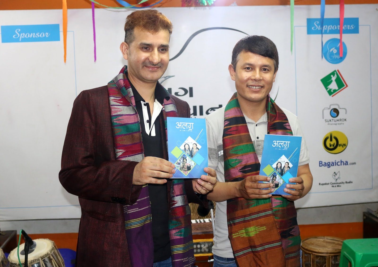यसैबीच, ‘अलग’ मासिक प्रकाशनको पहिलो अङ्क पनि सार्वजनिक भएको छ । विशेष अतिथिद्वय सङ्गीतकार किरण कँडेल र कवि फूलमान वलले अलग मासिकको सार्वजानिक गर्नुभएको हो ।