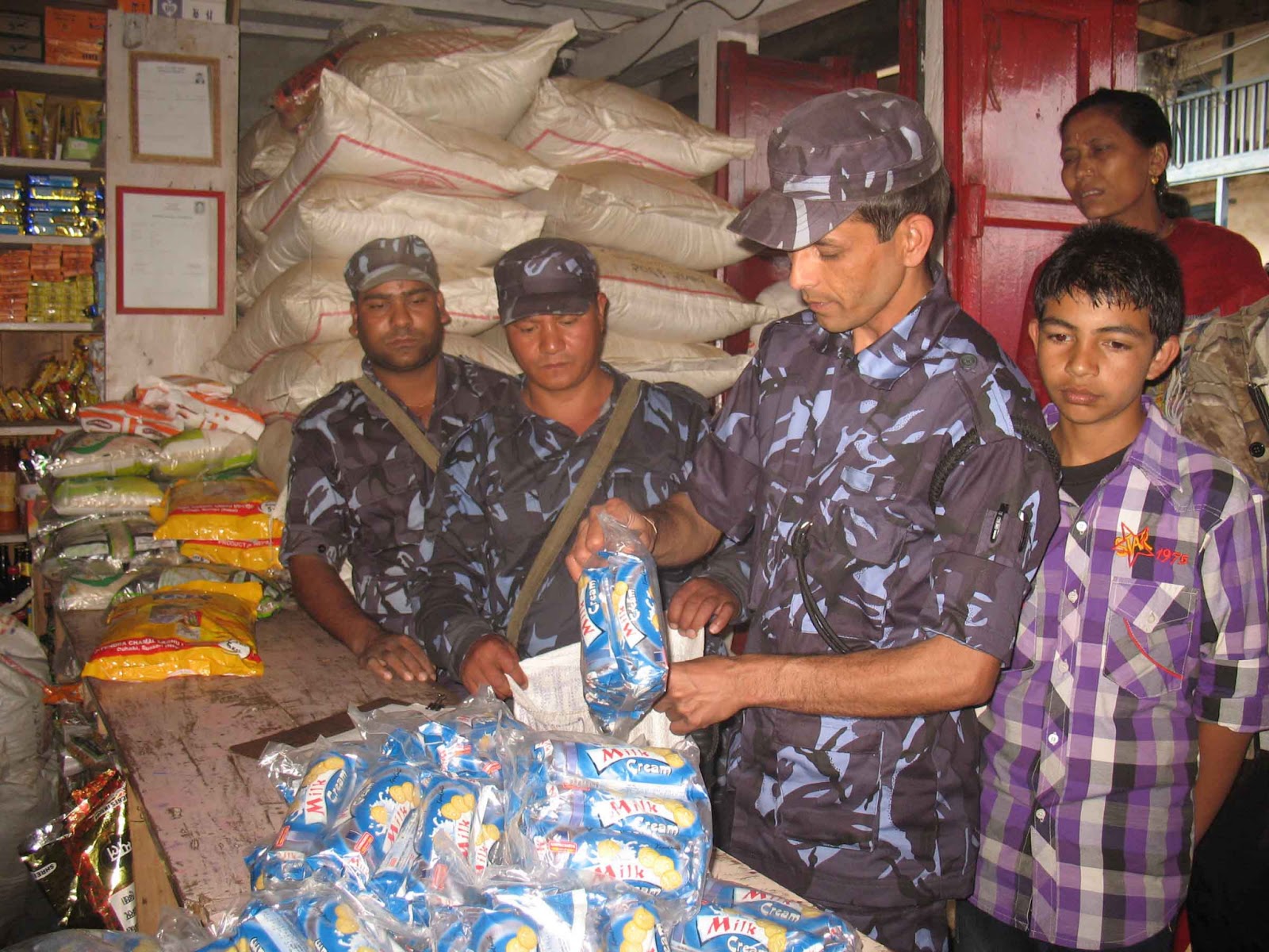 खोटाङको दिक्तेलमा बिक्री भइरेहका म्याद नाघेको बिस्कुट तथा चाउचाउ बरामद गर्दै प्रहरीहरु । अभावको कारण देखाउँदै व्यवसायीले अनूचित नाफा लिन थालेको गुनासो आएपछि जिल्ला प्रशासन, कोलेनिका, घरेलु तथा साना उद्योग बिकास समिति, उद्योग बाणिज्य संघ र जिल्ला प्रहरी कार्यालयले २४ जेठमा बजारमा छड्के अनुगमन गरेको छ ।