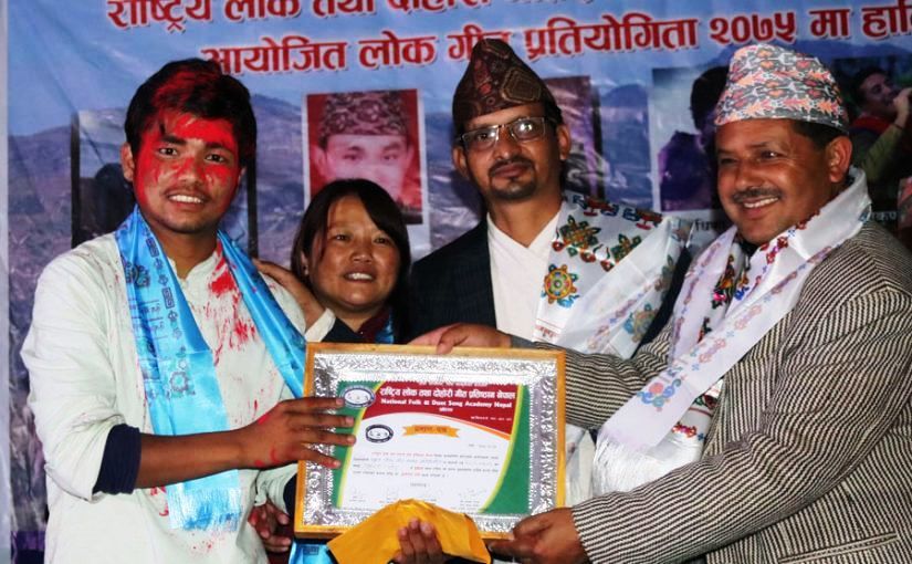 जिल्ला व्यापी खुला लोक गायन प्रतियोगिताको उपाधि पर्शुराम गजमेरले हात पार्नुभएको आयोजकले जनाएको छ । प्रतियोगितामा बेदना राई दोश्रो, युवराज राई तेश्रो र हर्कराज लोहार चौथो हुनुभएको निर्णायक मण्डलको गायक तथा संगीतकार शिब संगम राईले जनाउनुभयो । प्रतियोगितामा प्रथम, दोश्रो, तेश्रो र चौथो हुनेले क्रमशः एघार हजार १ सय ११, पाँच हजार ५ सय ५५, दुई ५ सय २५ र चौथो हुनेले दुई हजार १ सय २१ नगदका साथमा प्रमाणपत्र प्राप्त गर्नुभएको आयोजकले बताएका छन् । प्रतियोगिताका विजेता र उपविजेताले प्रदेश स्तरीय लोक गायन प्रतियोगितामा भाग लिन पाउने समेत अवसर प्रदान गरिएको छ ।