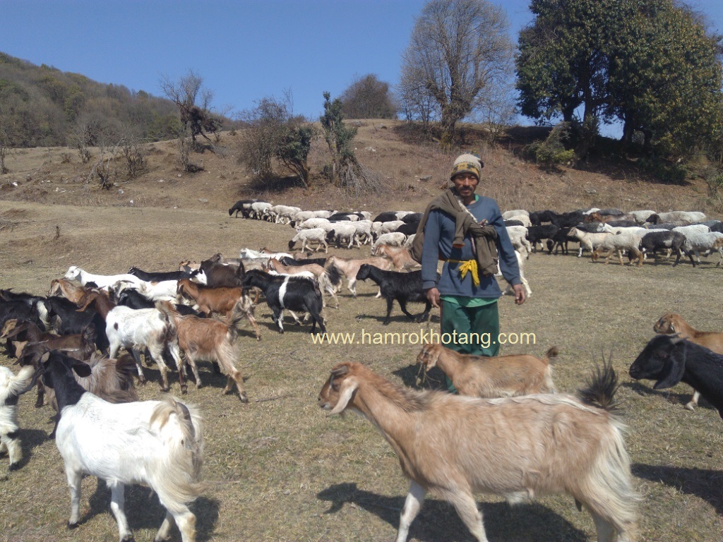 हो, खोटाङ सदरमुकाम दिक्तेलबजारको उत्तरमा अवस्थित पर्यटकीय रुपाकोट डाडाँ यसै पनि रमणीय छन् । लालीगुराँस, चाँप, सुनाखरी, सुनगाभा लगायतका फुलहरु अनि जैबीक बिबिधतायुक्त सेरोफेरोमा लस्करै भेडाबाख्रा डुलाउँदैछन् अधबैंशे कमल तामाङ र ढल्कँदो उमेरको बिर्खबहादुर गुरुङ ।