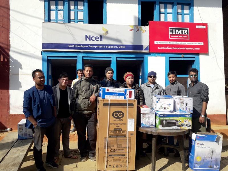 एनसेलले मनोज मोवाईल सेन्टरका लागि फो सिएफएल ईन्भटर, मनोज फोटोकपी सेन्टर तथा मोहन प्रकास ईलेक्ट्रोनिक्स सेन्टरलाई ईर्मजेन्सी टर्चलाईट र ब्राईट फ्युचर ईलेक्ट्रोनिक्सलाई मेघा चिप्स कम्प्युटर, माईक्रोवेभ ओभन प्रदान गरेको छ ।