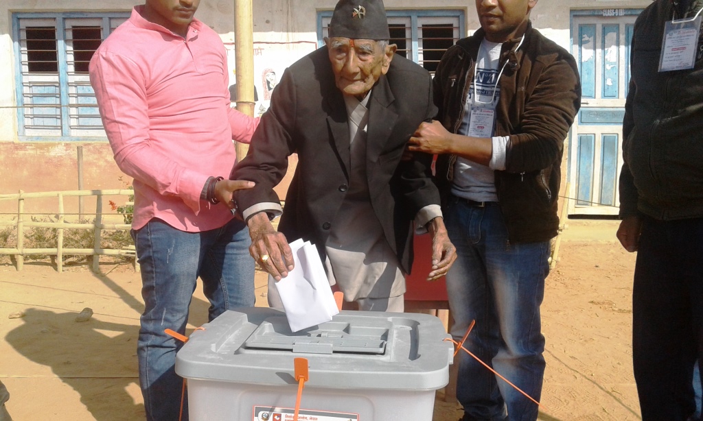 खोटाङ मंसिर–९, खोटाङमा १ सय ६ बर्षिया बयोबृद्घा नागरिकले मतदान गर्नुभएको छ । जिल्लाको रुपाकोट मझुवागढी नगरपालिका–१ दिक्तेलबजारका मणिसुन्दर बजिमयले सोही नगरको सरस्वती माबिको (ख)केन्द्रबाट प्रदेश तथा प्रतिनिधिसभाका निर्बाचनमा मतदान गर्नुभएको हो ।
