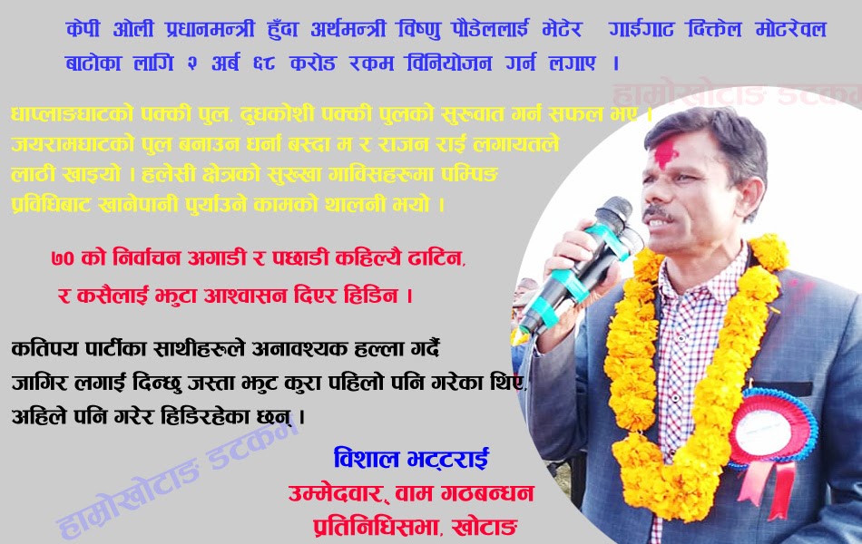 चाहे कांग्रेस, चाहे माओवादी, या एमाले नै कोही किन नहाेस् बिरामी पर्यो या केही भएमा त्यहीँ ठाउँमा खुरुरु पुग्ने त्याे व्यक्ति हो ‘विशाल भट्टराई‘ ।